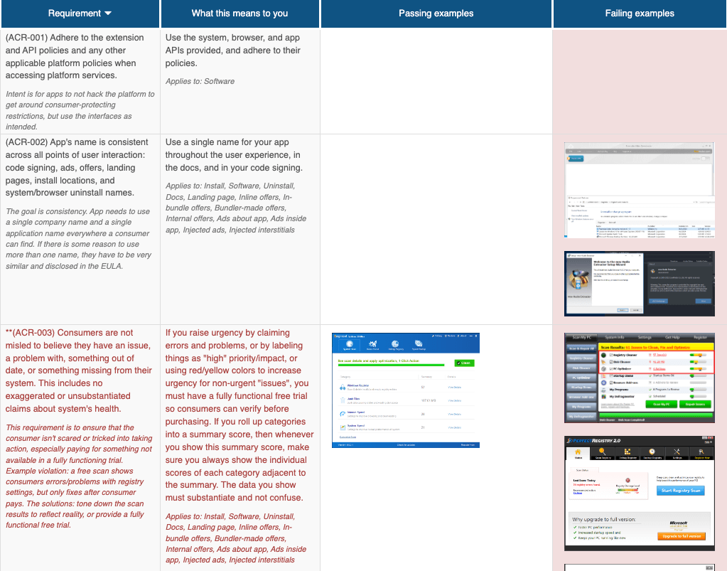1. 首先,需要通过 AppEsteem 等 AMTSO 成员机构申请进行检测,AMTSO 的检测标准文件就有几十页,多达一百多项检测标准,必须全部通过